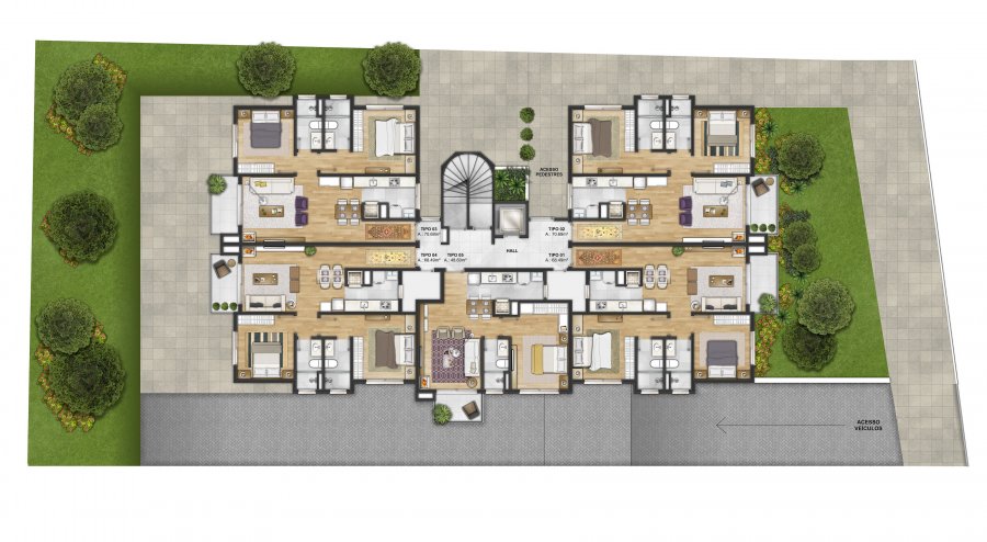 Apartamentos com áreas de 48,60 m² a 120,94 m² privativos